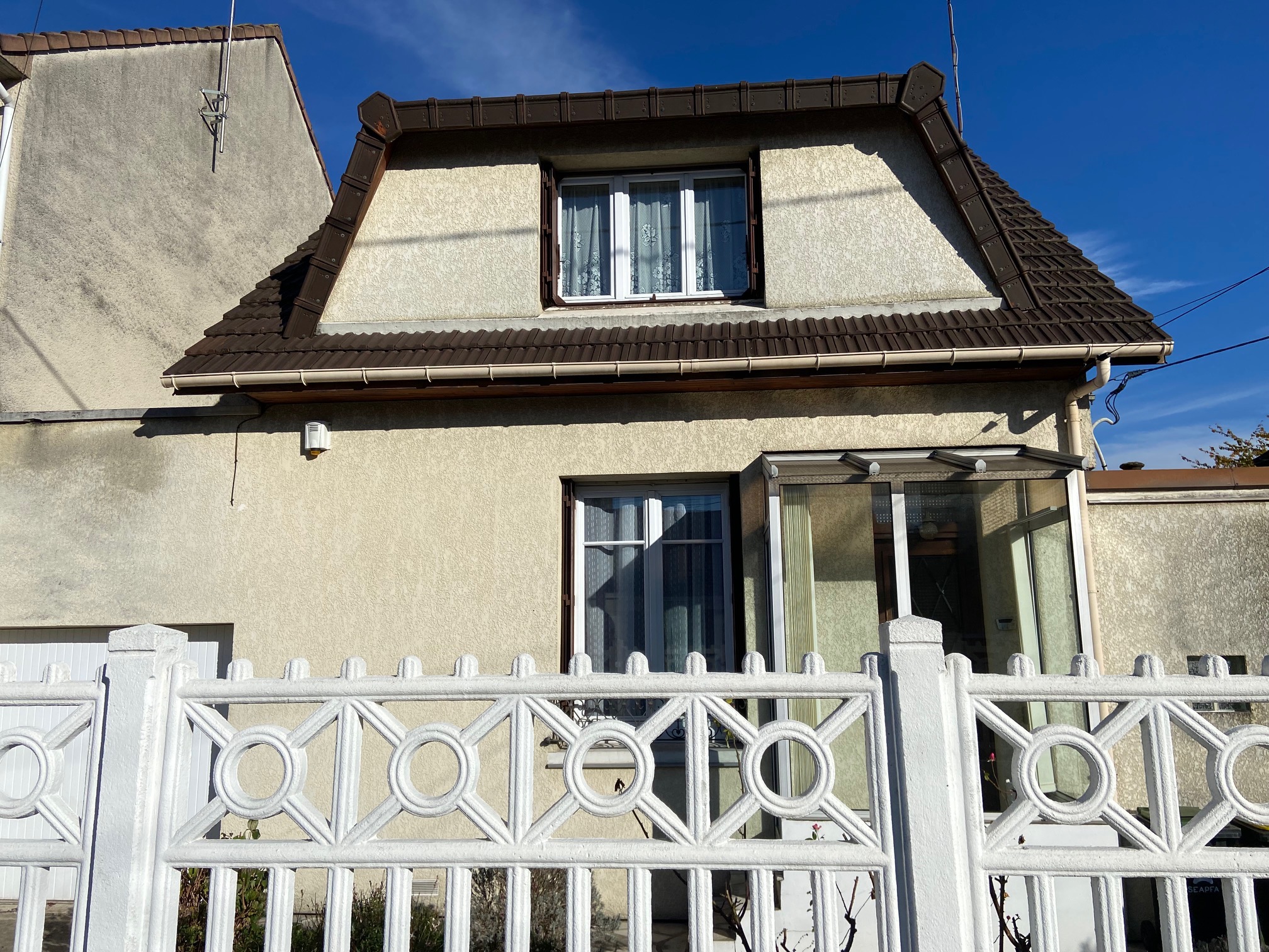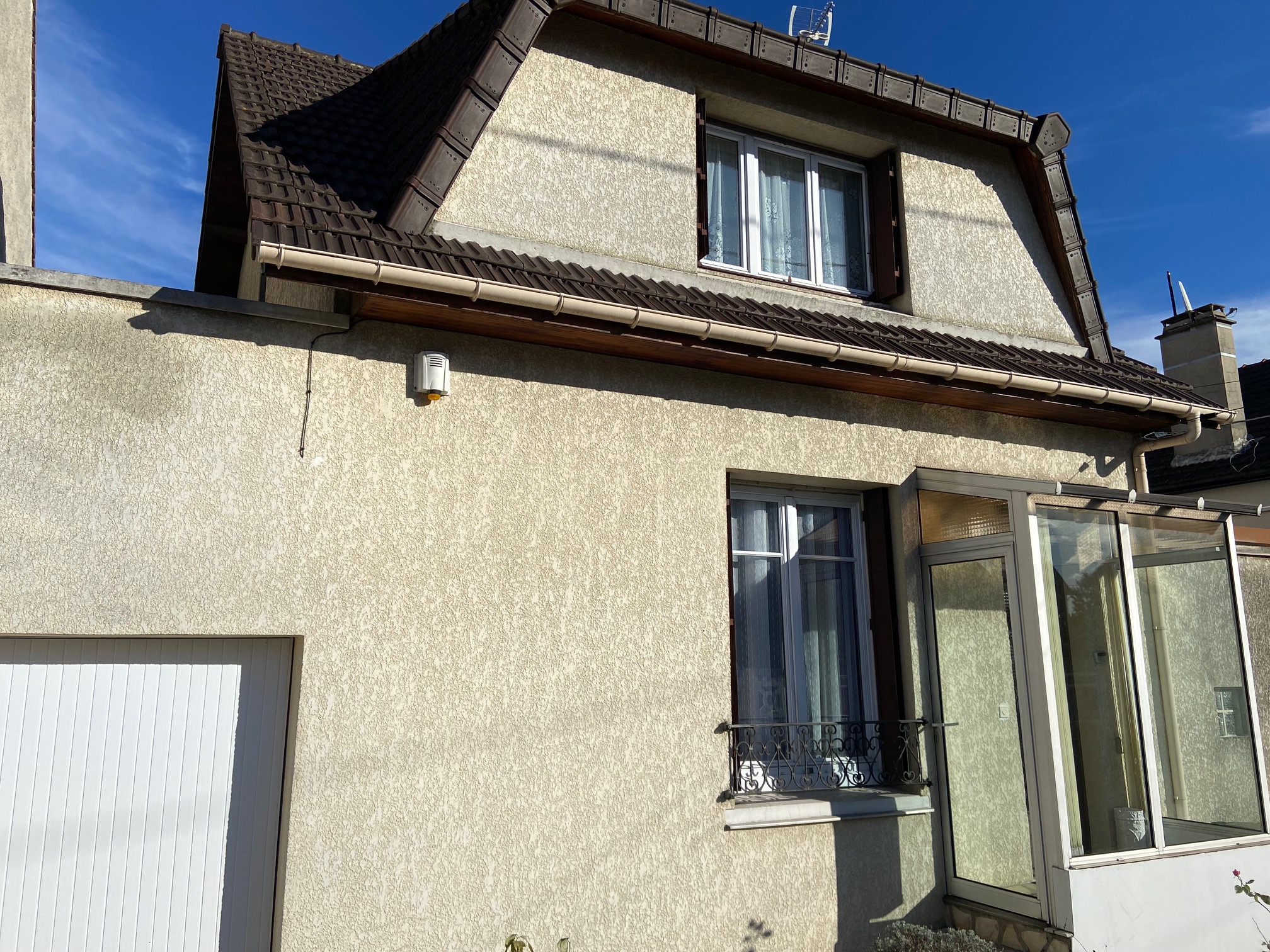 LE BLANC MESNIL SUD Pavillon édifié sur 402m² de terrain: Entrée, séjour salon cuisine équipée, chambre avec salle d'eau wc inclus. A l'étage 2 belles chambres, salle de bains, w indépendant, combles garage attenant 2 vts, atelier/ cellier