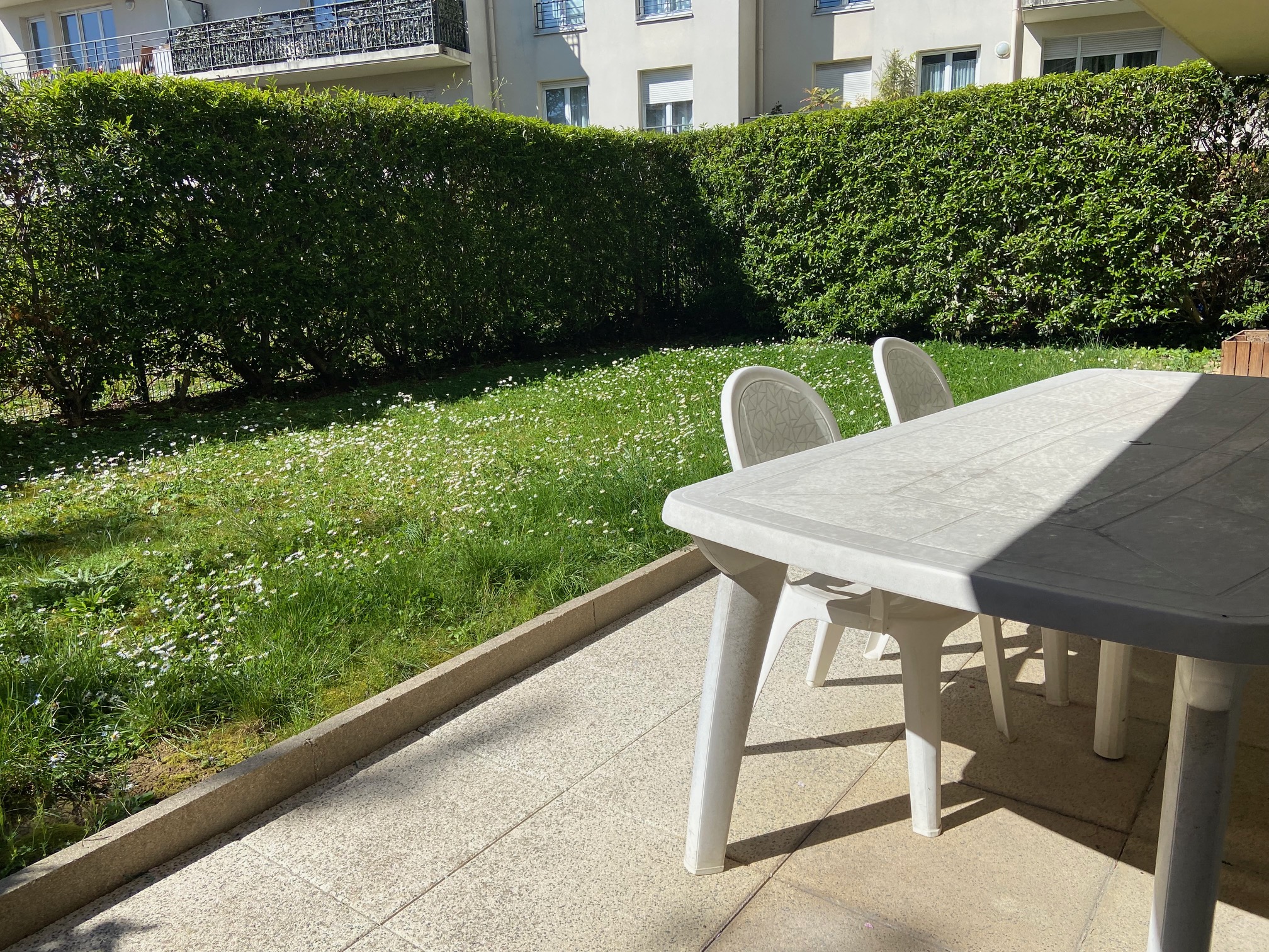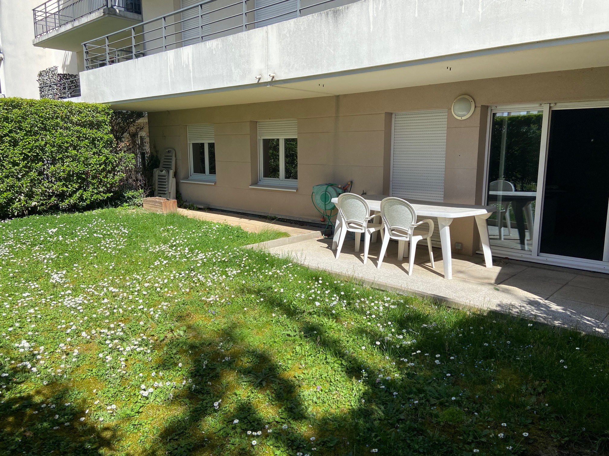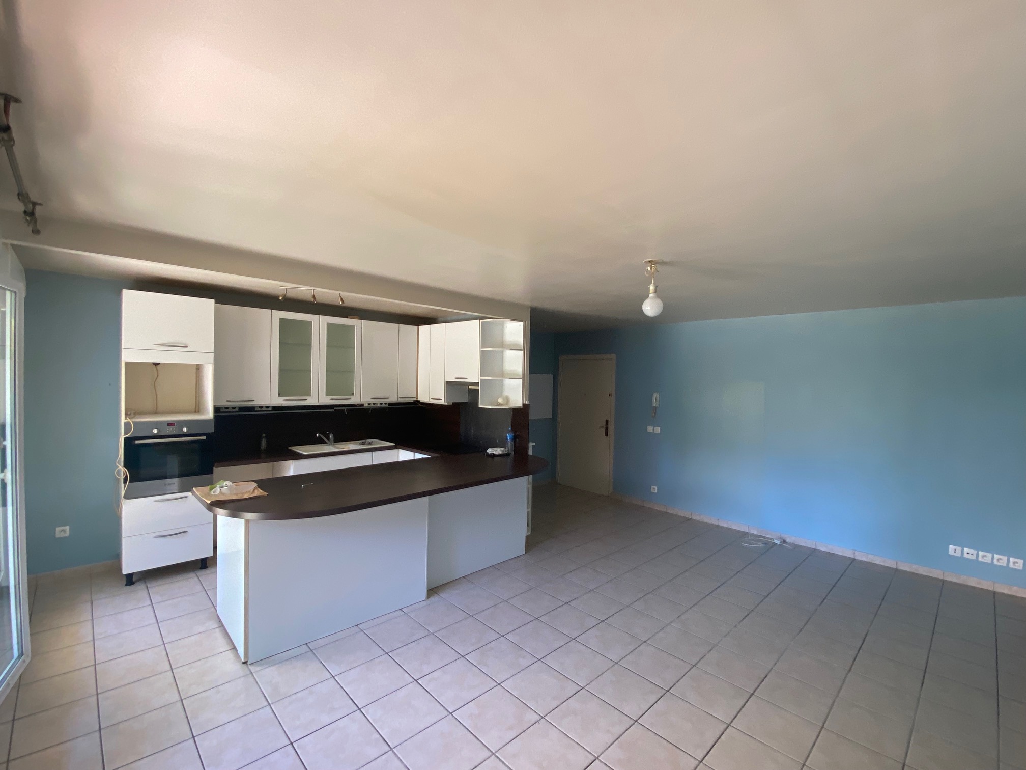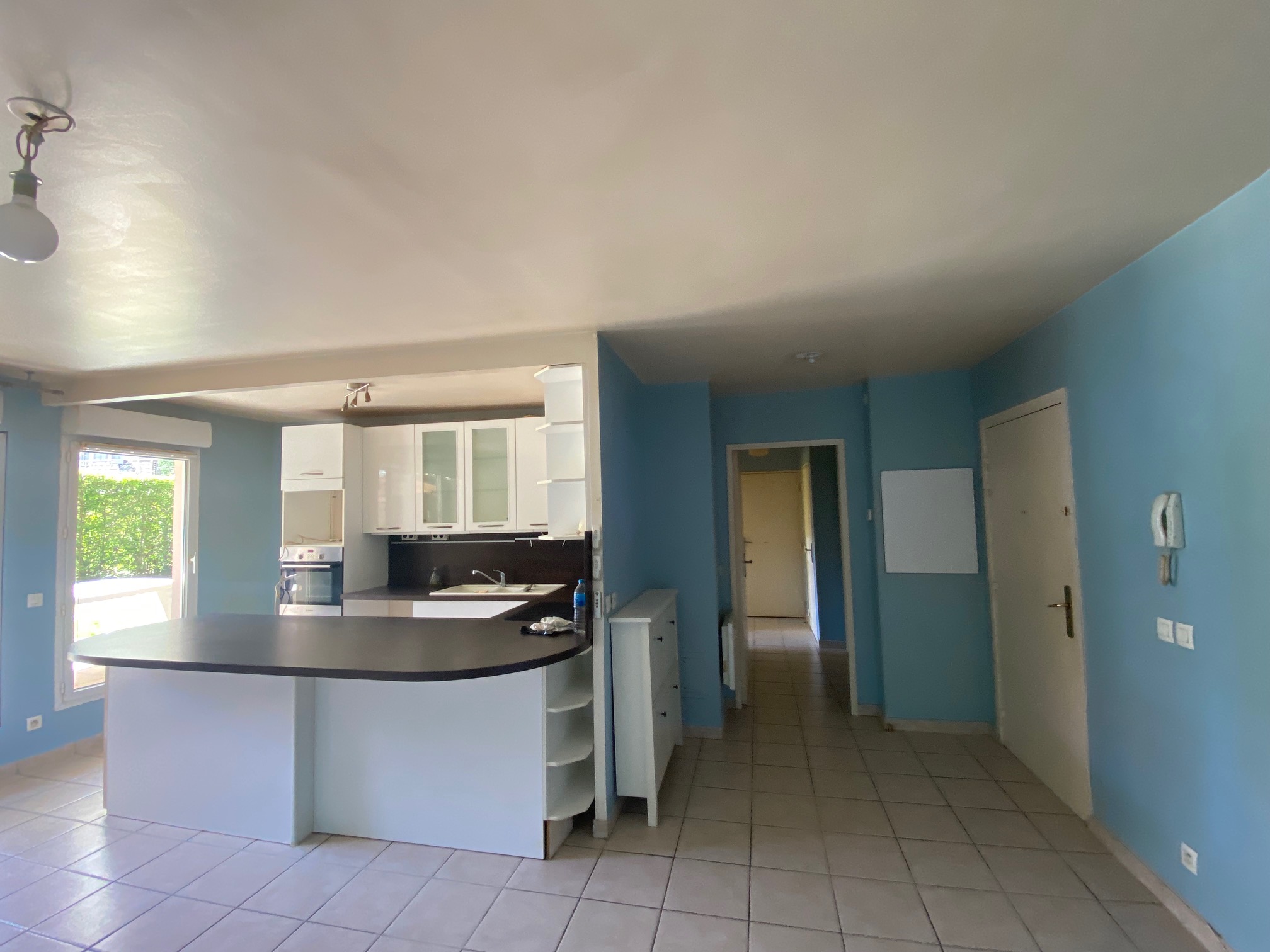 DRANCY Centre Dans résidence de 2028,appartement F3 de 65m² habitable: Entrée, séjour cuisine aménagée américaine, terrasse, jardin privatif de 57m², dégagement, placard, 2 chambres avec placard, salle d'eau, wc séparé. box au sous sol