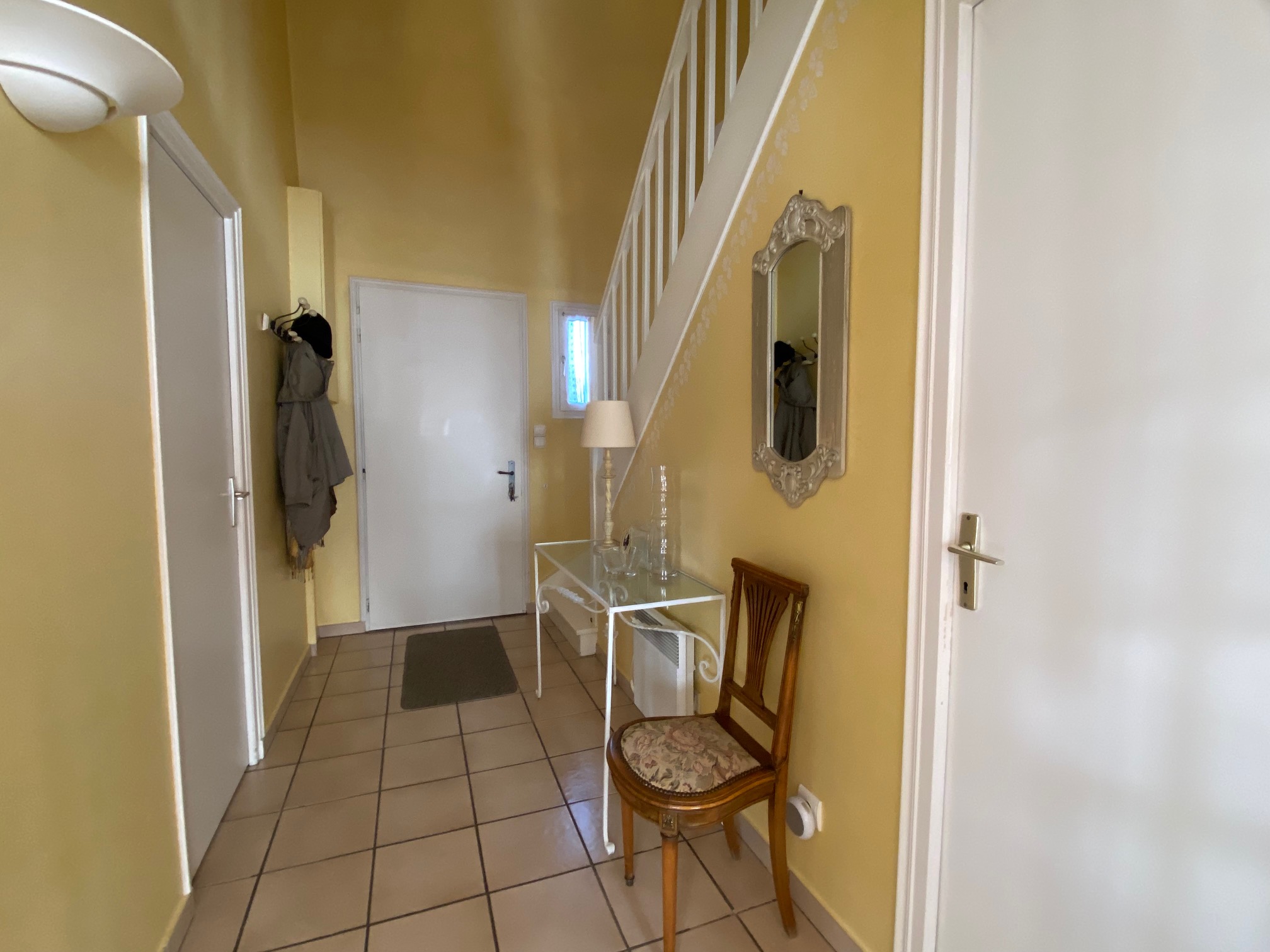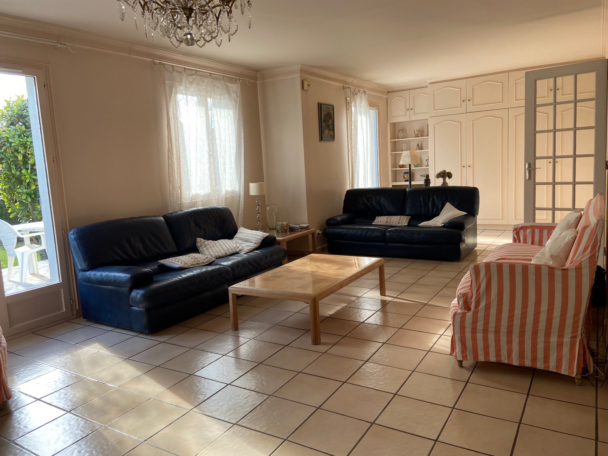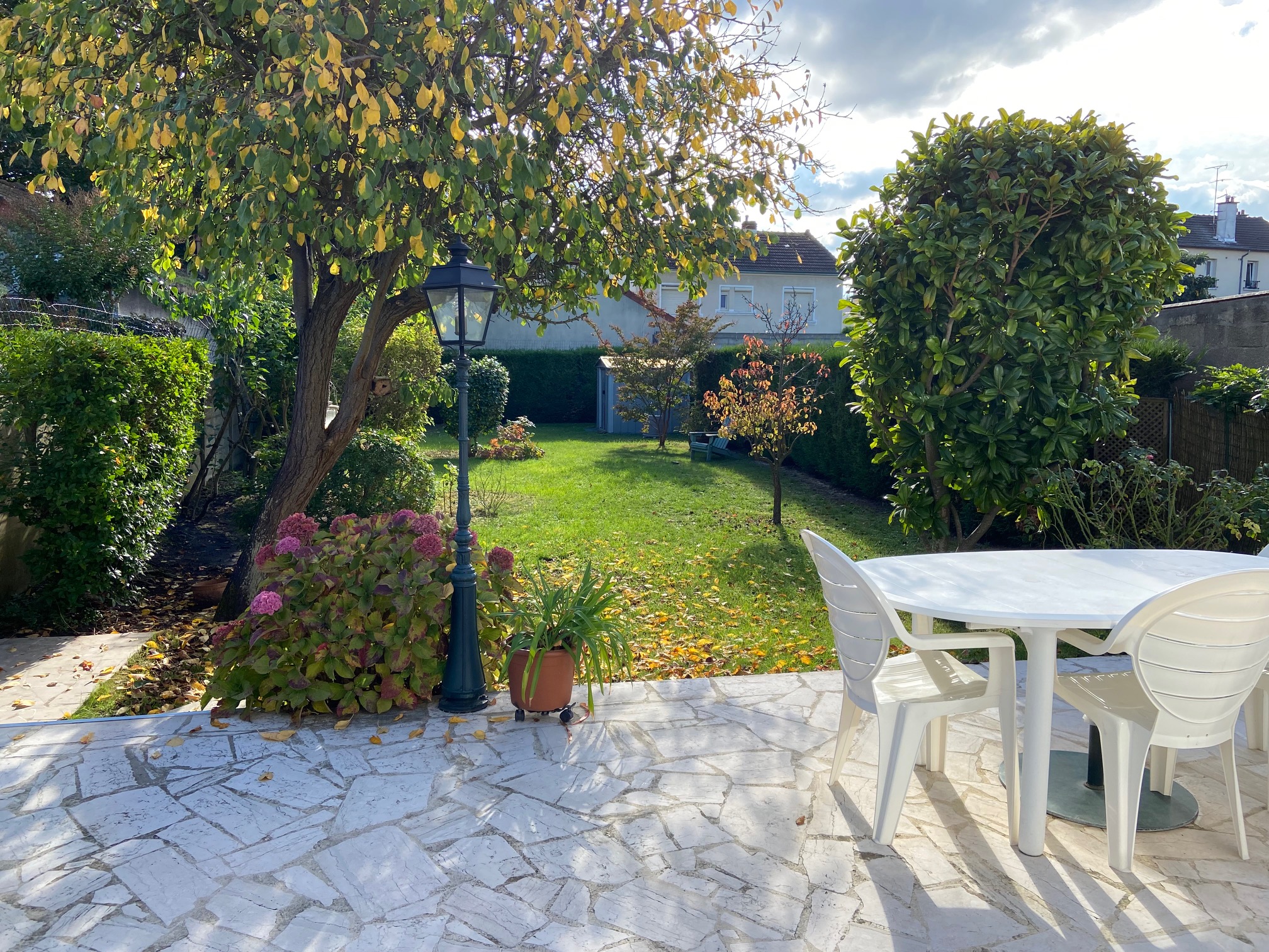 Drancy La Mare Pavillon construit en 1989 sur 487m² de terrain: Entrée, séjour salon +cheminée, salle à manger ou chambre, terrasse, cuisine équipée, wc. A l'étage: 3 chambres, salle de bains, salle d'eau+wc. Sous sol total: garage double, buanderie.