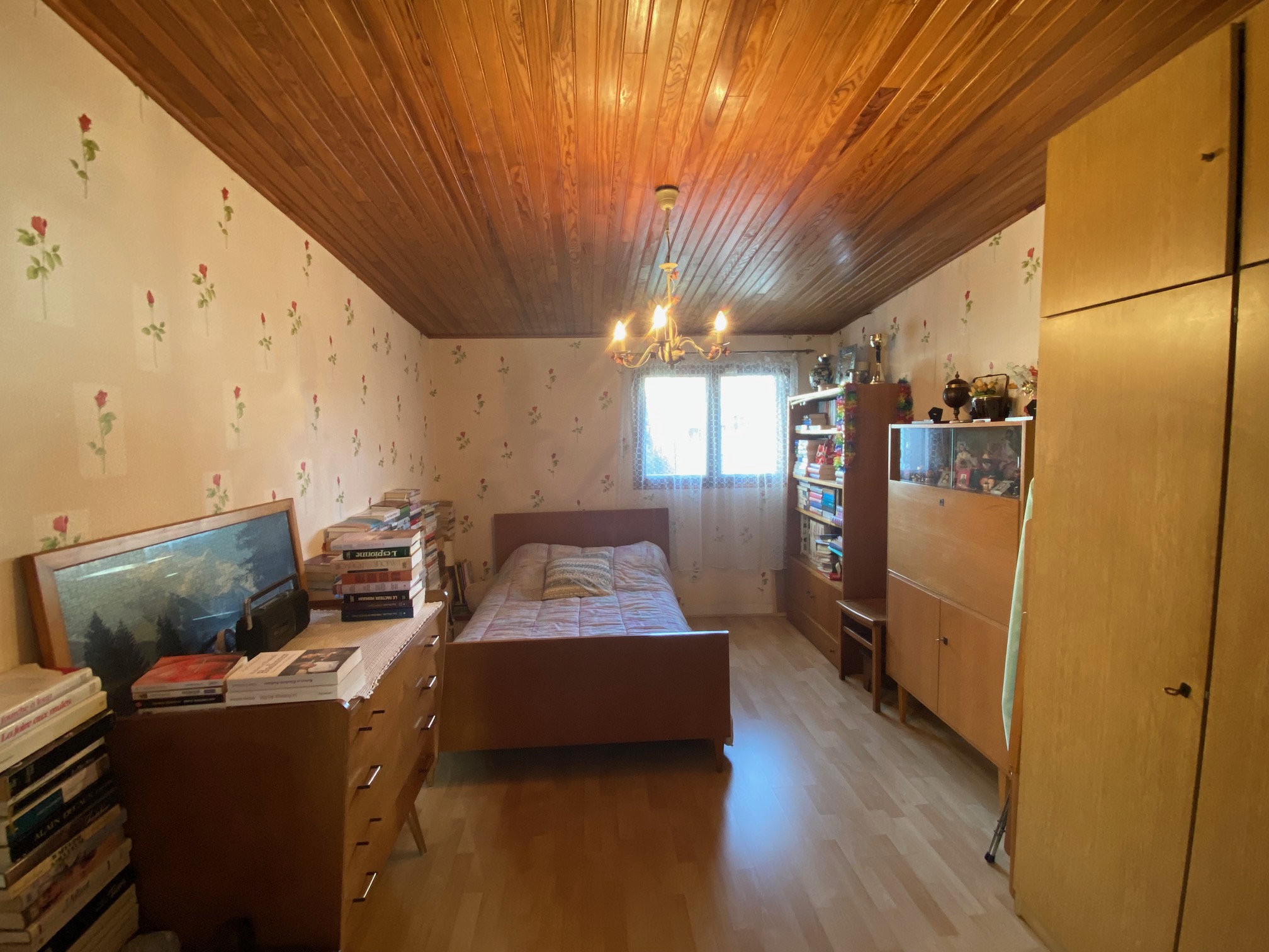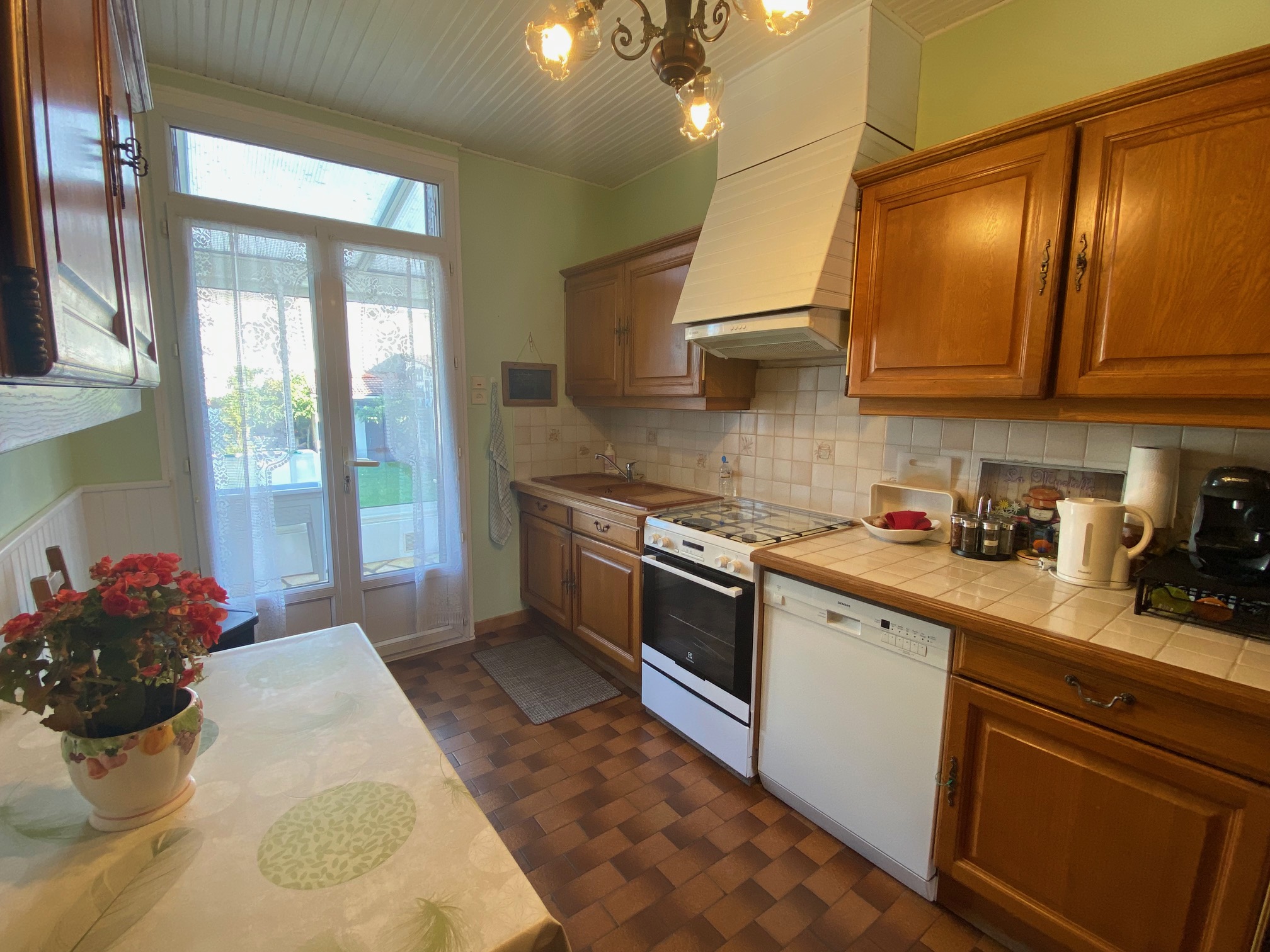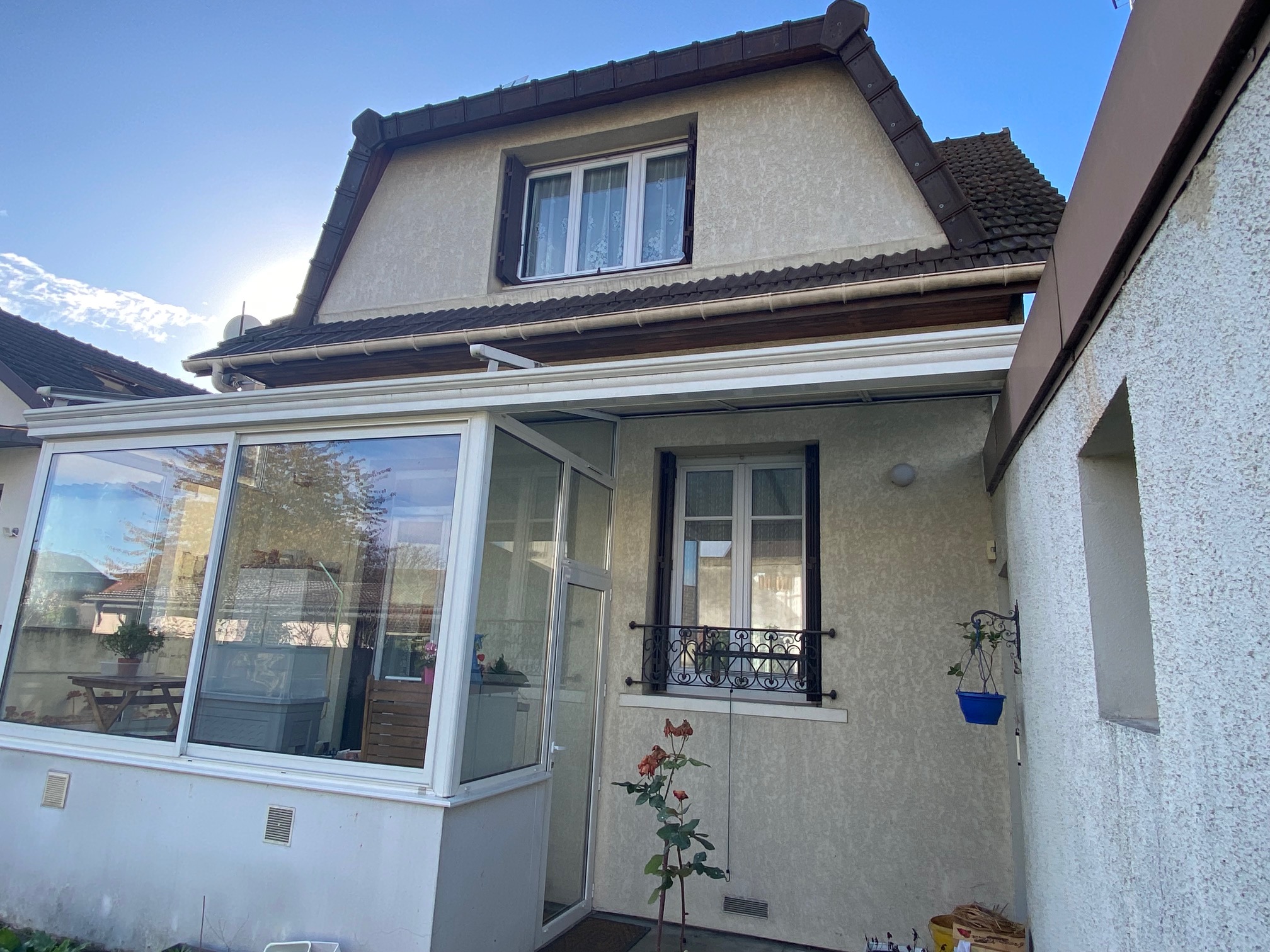 LE BLANC MESNIL SUD Pavillon édifié sur 402m² de terrain: Entrée, séjour salon cuisine équipée, chambre avec salle d'eau wc inclus. A l'étage 2 belles chambres, salle de bains, w indépendant, combles garage attenant 2 vts, atelier/ cellier